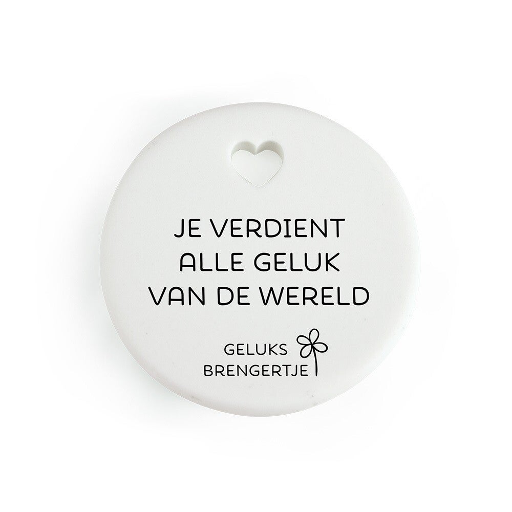 Liefste moederGeluksbrengertjeOok als sleutelhanger of ketting te gebruikenKleur: wit met zwarte opdrukMateriaal: keramiekAfmeting: 4.3x0.5 cm (⦰xh)Gewicht: 18 gramArt.nr. 68572