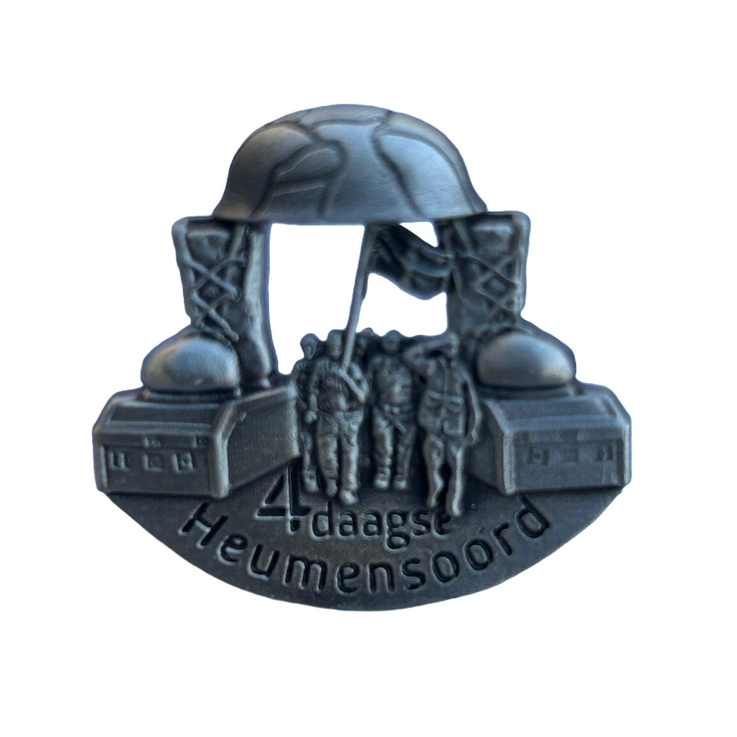 Deze nieuwe pin is speciaal voor militairen die de 4Daagse meelopen. Zij starten en finishen elke dag bij Kamp Heumensoord waar ze ook, samen met de militairen van alle andere landen, verblijven en overnachten.