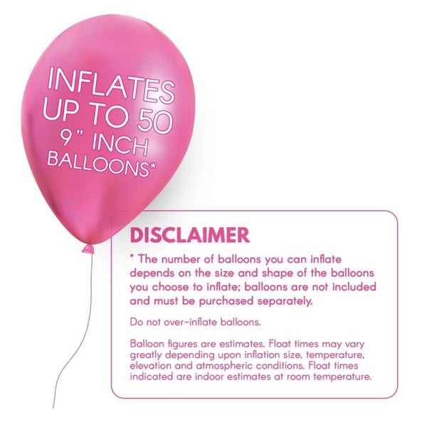 De indicatie van het aantal ballonnen dat gevuld kan worden is gebaseerd op standaard ballonnen van 9'' inch. Bij afwijkende vormen en afmetingen kan dit aantal afwijken.