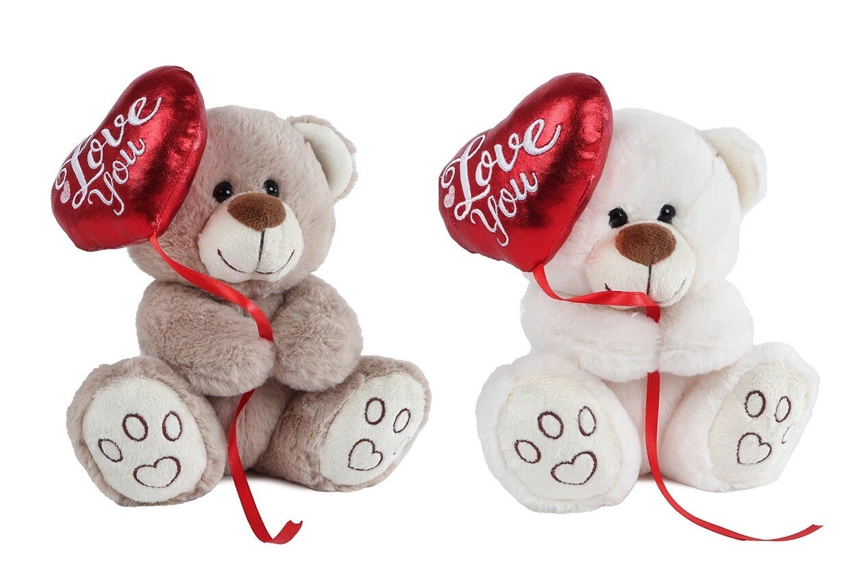 Beer met ballonhart I love you knuffel - knuffel wit