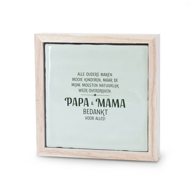 Lief tegeltje met een houten lijstje om te laten zien dat je aan iemand denkt
