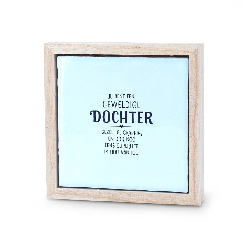 Lief tegeltje met een houten lijstje om te laten zien dat je aan iemand denkt