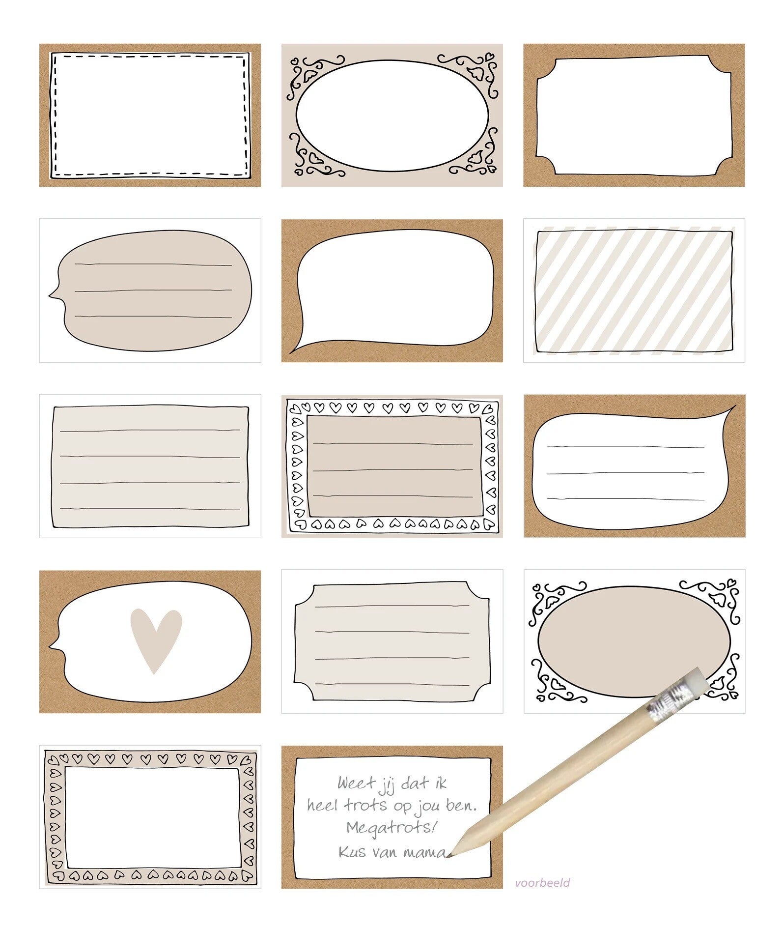 Afmeting: 13x08x2.8 cm (bxhxd) kaartjes 8.5x5.5 cm (bxh)