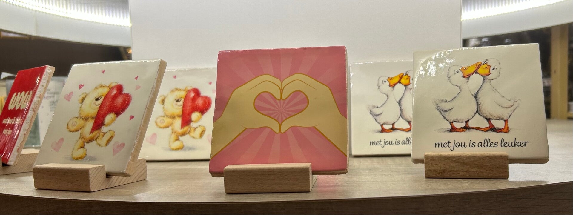 Lief tegeltje om te laten zien dat je aan iemand denktKleur: rood witMateriaal: handgebakken keramiekAfmeting: 10x10 cm cm Inhoud: 1 stuksArt.nr. 550
