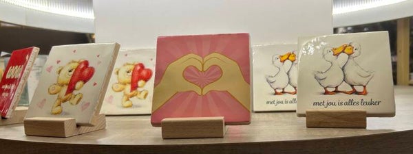 Lief tegeltje om te laten zien dat je aan iemand denktKleur: roze roodMateriaal: handgebakken keramiekAfmeting: 10x10 cm cm Inhoud: 1 stuksArt.nr. 553
