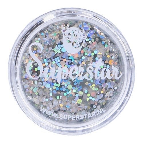 De speciale formule behoudt de maximale glans van de glitter zonder dof te worden en hecht perfect aan Superstar Aqua Face & Bodypaint.