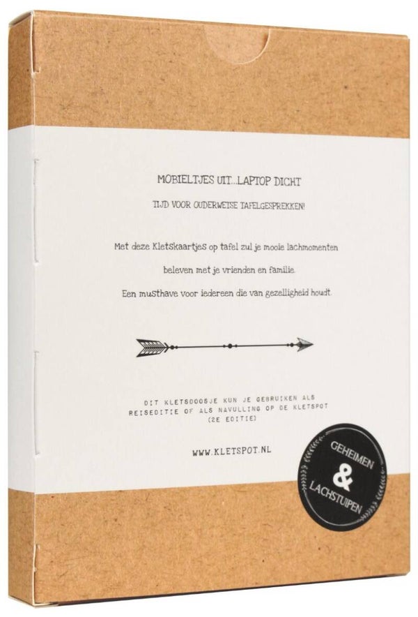 De compacte versie van de Kletspot ideaal voor onderweg of op reis. 108 kaartjes met vragen vragen die gegarandeerd gaan zorgen voor hilarische, lachwekkende en gezellige momenten. Met deze kletskaartjes kun je ook onderweg mooie lachmomenten beleven met je vrienden en familie.