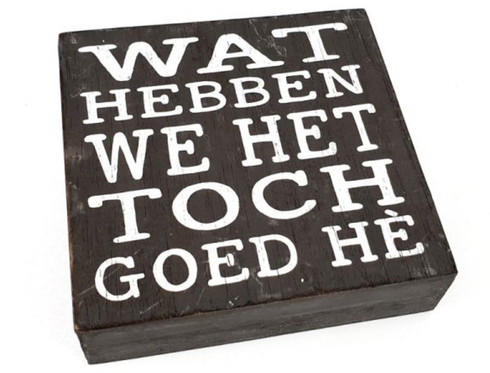 Wat hebben we het toch goed hรจ - tekstblok woodart