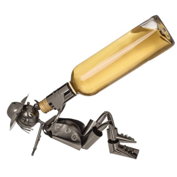 Decoratieve fleshouderMateriaal: gelakt metaalAfmeting: 14x11.5x28 cm (hxbxl)Art.nr. 318