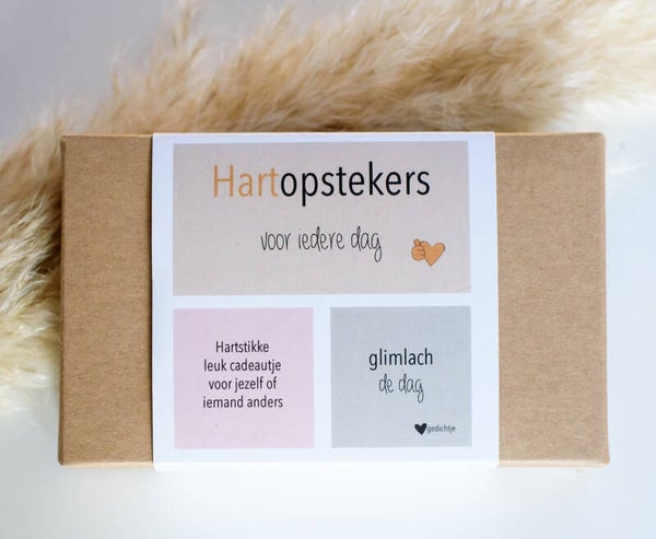 Een doosje Hartopstekers met 35 positieve en inspirerende teksten. Je kunt iedere dag een opsteker kiezen en een mooi plekje geven of iemand verrassen door de opsteker weg te geven.
